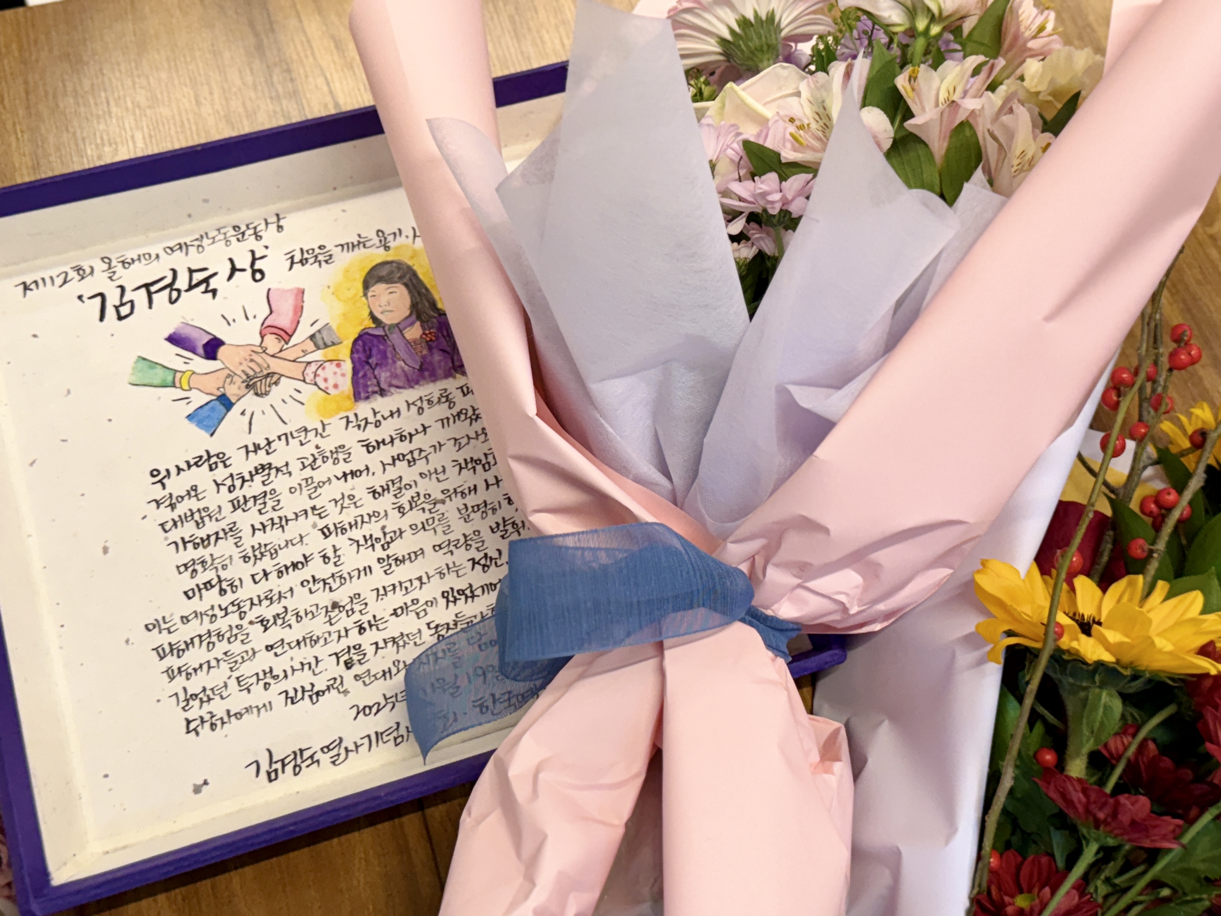 매년 11월마다 김경숙상 시상식이 열립니다. 노동자들의 연대와 단결된 힘을 믿었던 YH무역의 조합원 김경숙 열사의 정신을 기리기 위해, 저항과 투쟁으로 그 뜻을 이어가는 여성노동자를 선정하여 수상합니다. 사회가 외면하는 여성노동의 가치를 드러내기 위해 고군분투하는 모든 여성노동자에게 보내는 응원과 연대이기도 합니다. 역대 수상자 분들을 살펴보면, 절로 고개가 절로 끄덕여집니다. 그 명단이 그대로 시대를 관통하는 여성노동운동사이기 대문입니다. 지난 11월19일 열린 제12회 김경숙상은 다른 어느 때보다 서울여노에게 뜻깊었습니다. 수상자가 서울여노 상담실이 밀착 지원한 대한항공 여성노동자 장유정(가명) 님이기 때문입니다. 7년4개월을 싸워 개인의 승리를 넘어 중요한 판결을 남기기까지, 얼마나 큰 용기와 인내가 매순간 필요했을지 짐작조차 어렵습니다. 서울여노가 당신과 함께 싸워 영광이었습니다. 우리는 '운동가로 거듭난' 당신과 함께, 또 다른 당신을 만나기 위해 성평등 걸음을 기쁘게 내딛겠습니다.