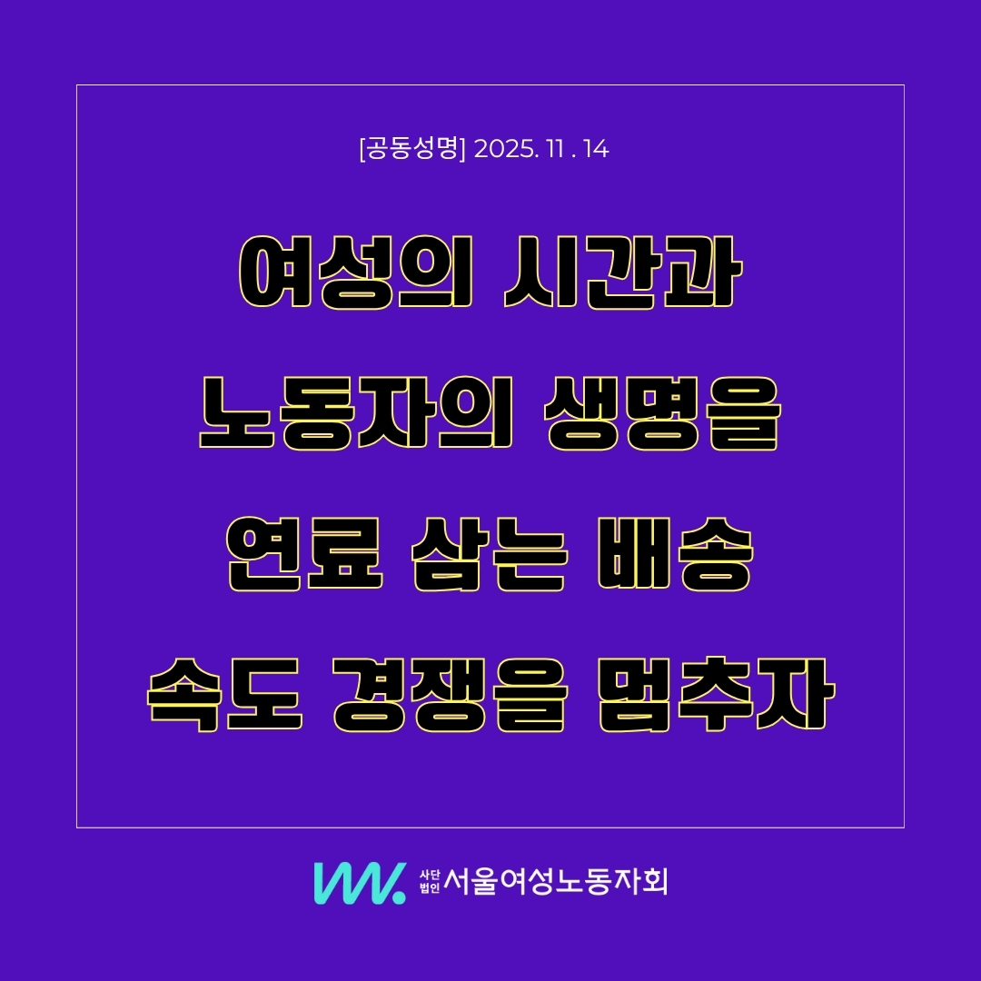 택배 노동자의 죽음은 끔찍한 장시간 노동체제가 만들어낸 구조적 폭력이며, 새벽배송이 이 구조를 가장 극단적인 형태로 드러내고 있을 뿐이다. 이러한 구조를 설계하고 확산시킨 주체는 소비자가 아니라 기업이다. 쿠팡은 시장 점유를 확대하기 위해 로켓배송, 새벽배송, 365일 배송이라는 속도경쟁을 도입했고, 기존 유통·물류 산업 전반에 심야·장시간 노동을 확산시켰다. 멤버십과 운영 시스템을 통해 ‘편의’와 ‘필수’의 경계를 무너뜨렸으며, 최저임금 수준의 주간노동으로는 생계를 유지하기 어려운 현실에서 노동자들을 심야노동으로 내몰았다. 반복되는 사망, 체중 감소, 뇌출혈, 졸음운전, 과로, 산재 불승인, 그리고 특수고용·하청·대리점 구조는 모두 이 속도경쟁이 만들어낸 결과다. (후략)