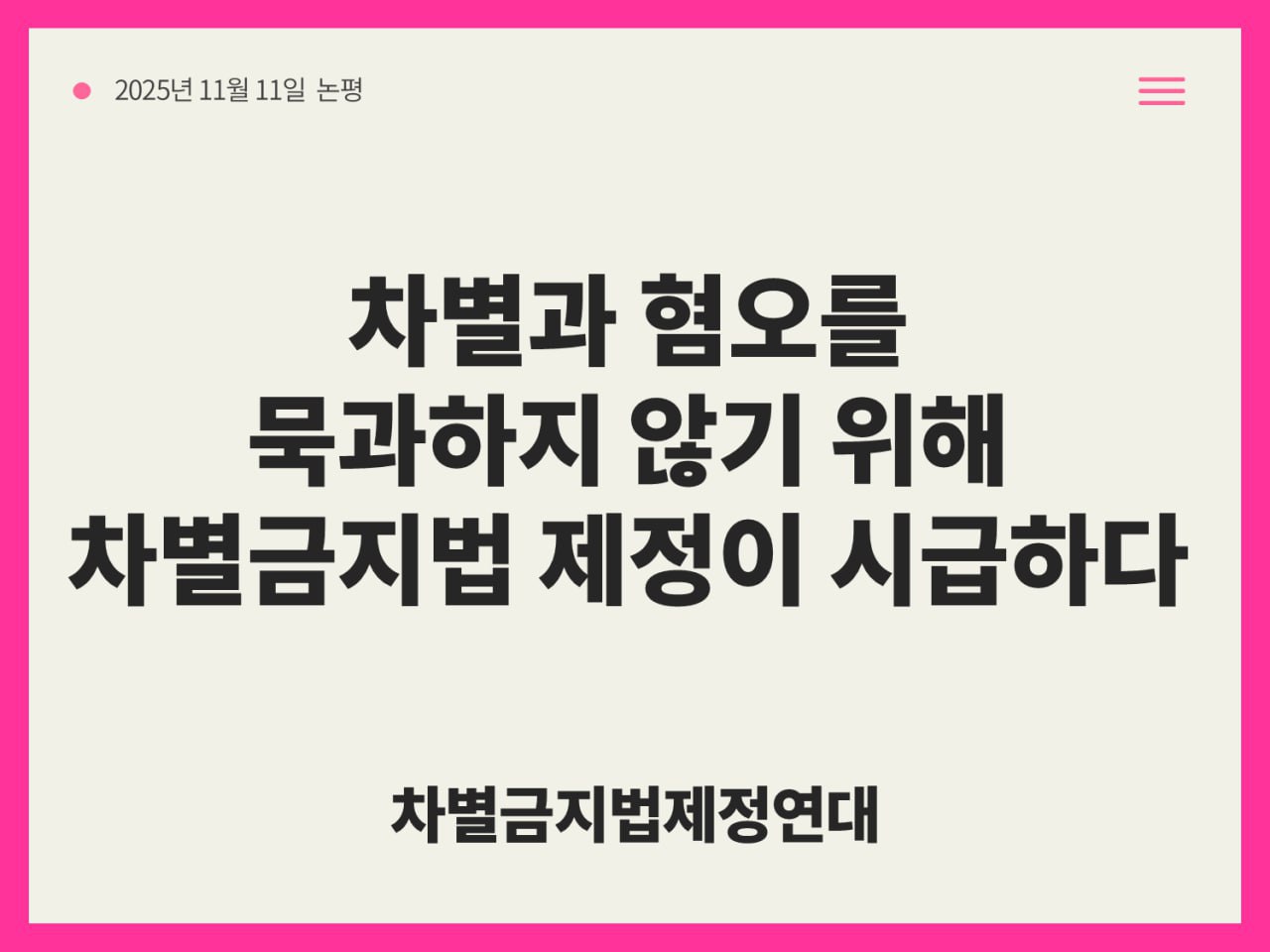 혐오표현으로 뒤덮힌 현수막과 집회, 나아가 혐오범죄로까지 드러나는 심각한 혐오의 양태에 대해 정부차원의 대책 마련 의지는 환영할만한 일이다. 하지만 작금의 상황은 눈에 띄는 현수막만을 철거한다고 혐오집회를 규제한다고 해결되지 않는다. 혐오는 구조적 차별이 만연한 현실 속에서 드러나는 현상이다. 그렇다면 중요한 것은 이 사회의 구조적 차별이 벌어지는 문제를 정확하게 진단하는 일이 우선이라는 의미다. (후략)